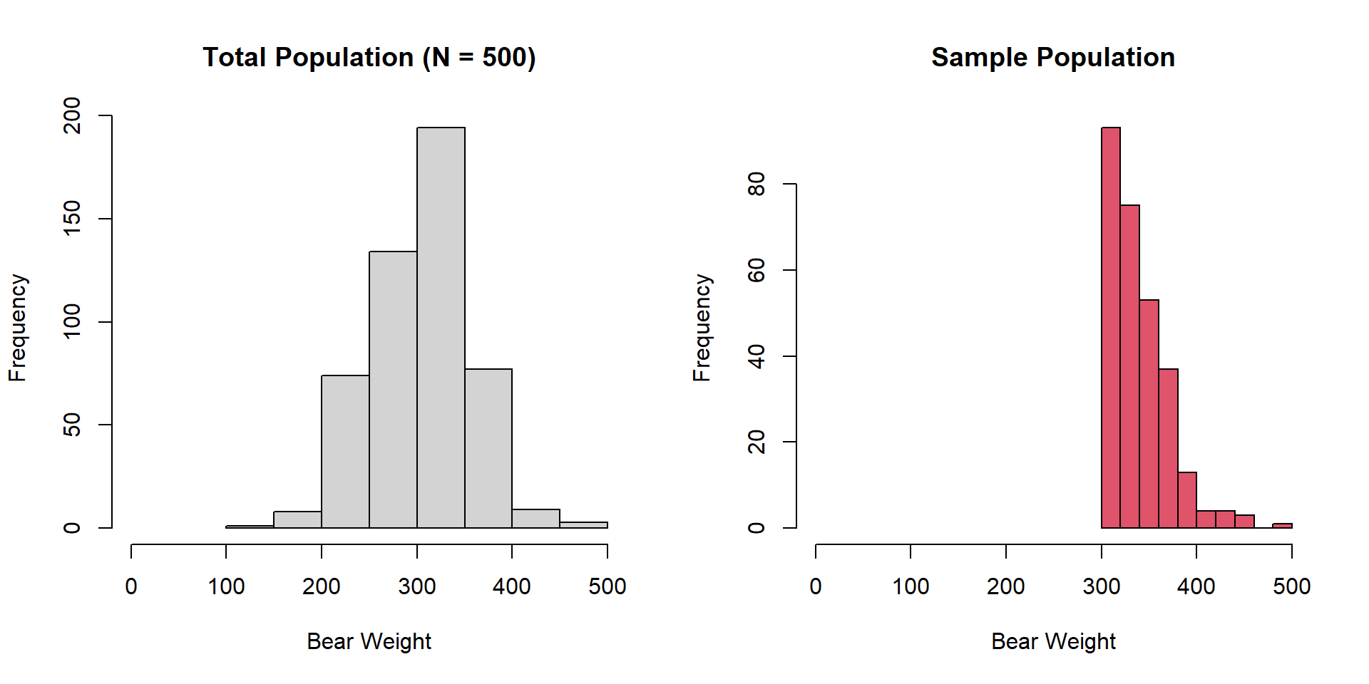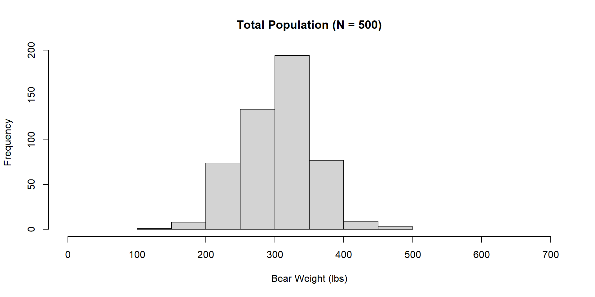 Sample Population: Weight of harvested black bears in a region that allows food provisioning