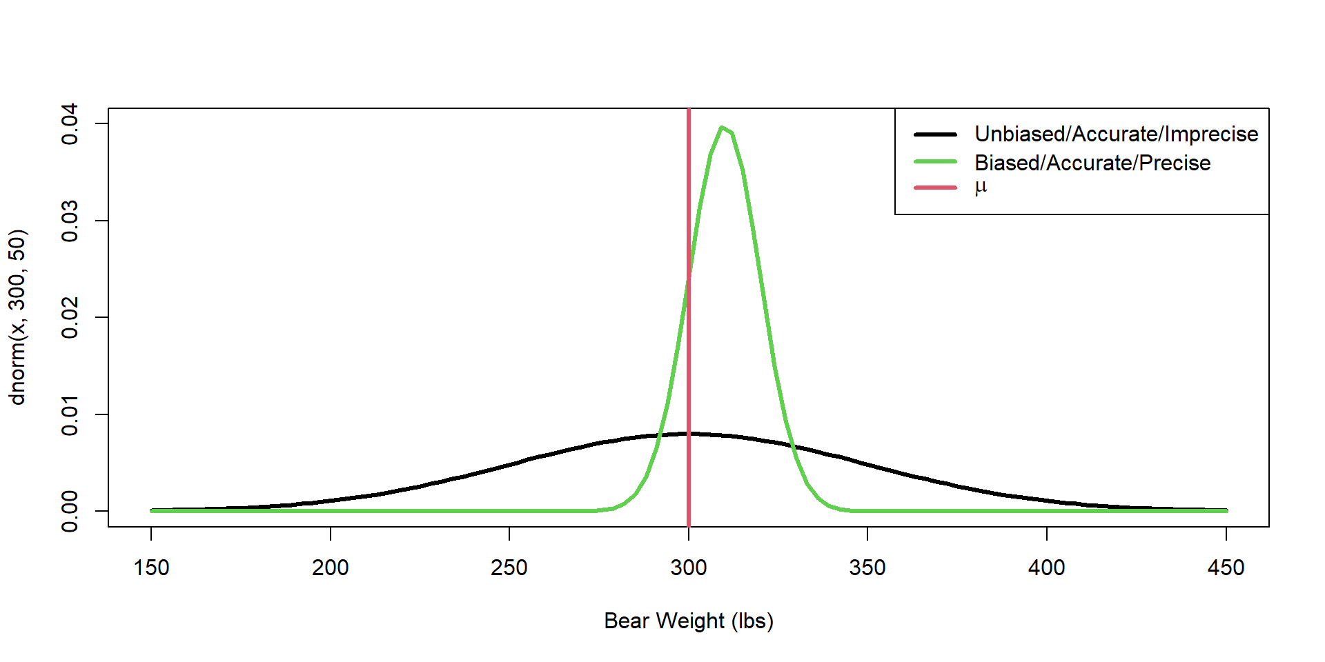 \text{Bias}(\hat{\mu},\mu) = \left(\int_{\hat{\mu}} \hat{\mu} p(\hat{\mu})dx\right) - \mu