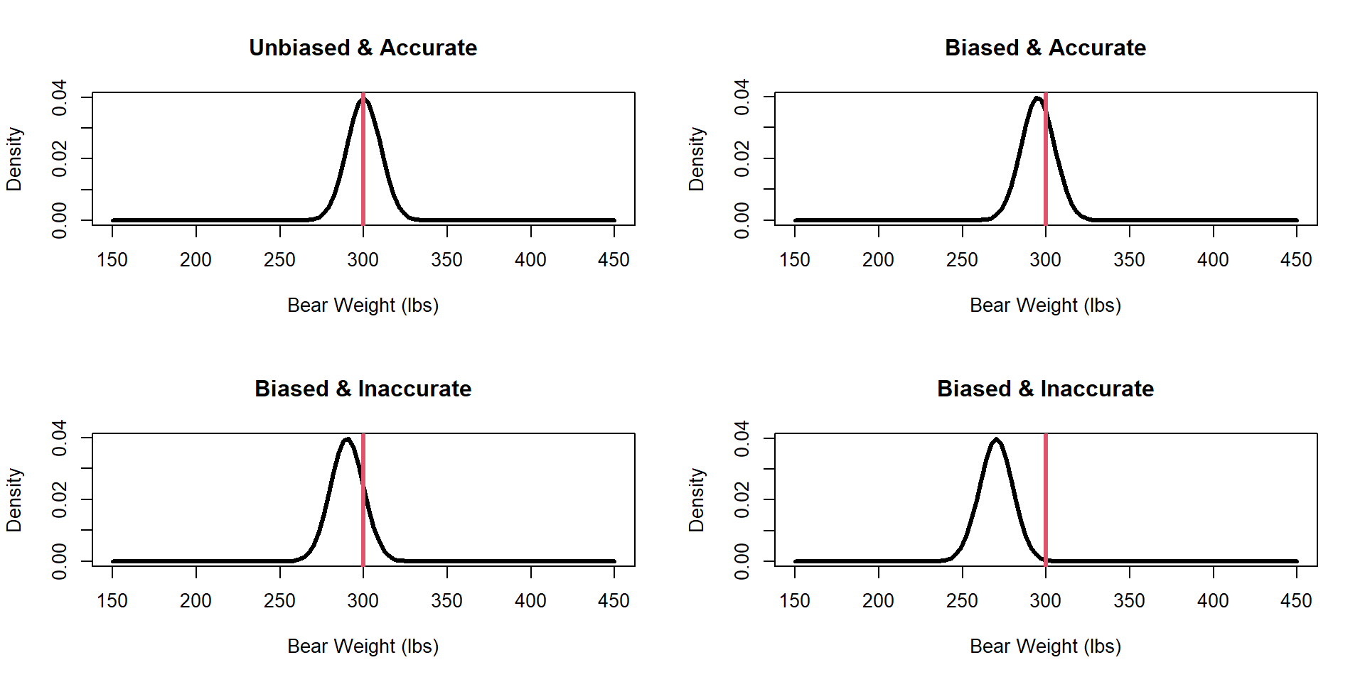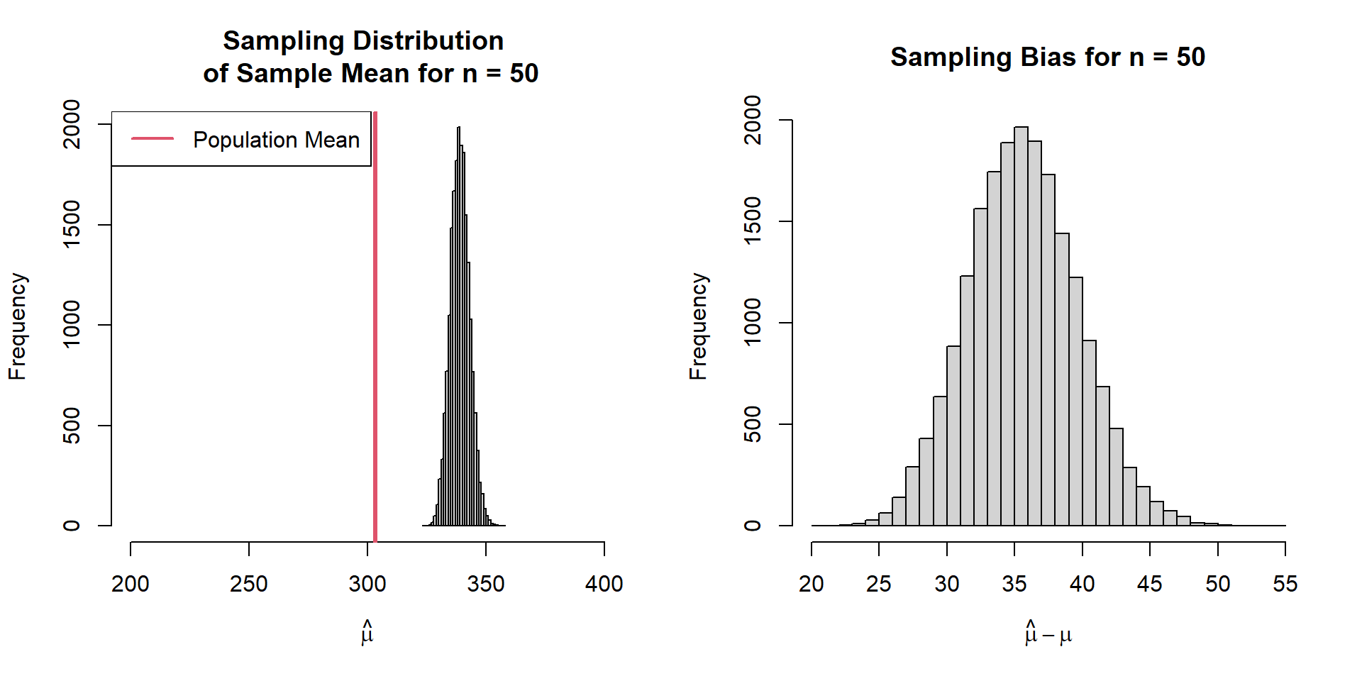 \text{Bias}(\hat{\mu},\mu) = \bar{\hat{\mu}} - \mu \\