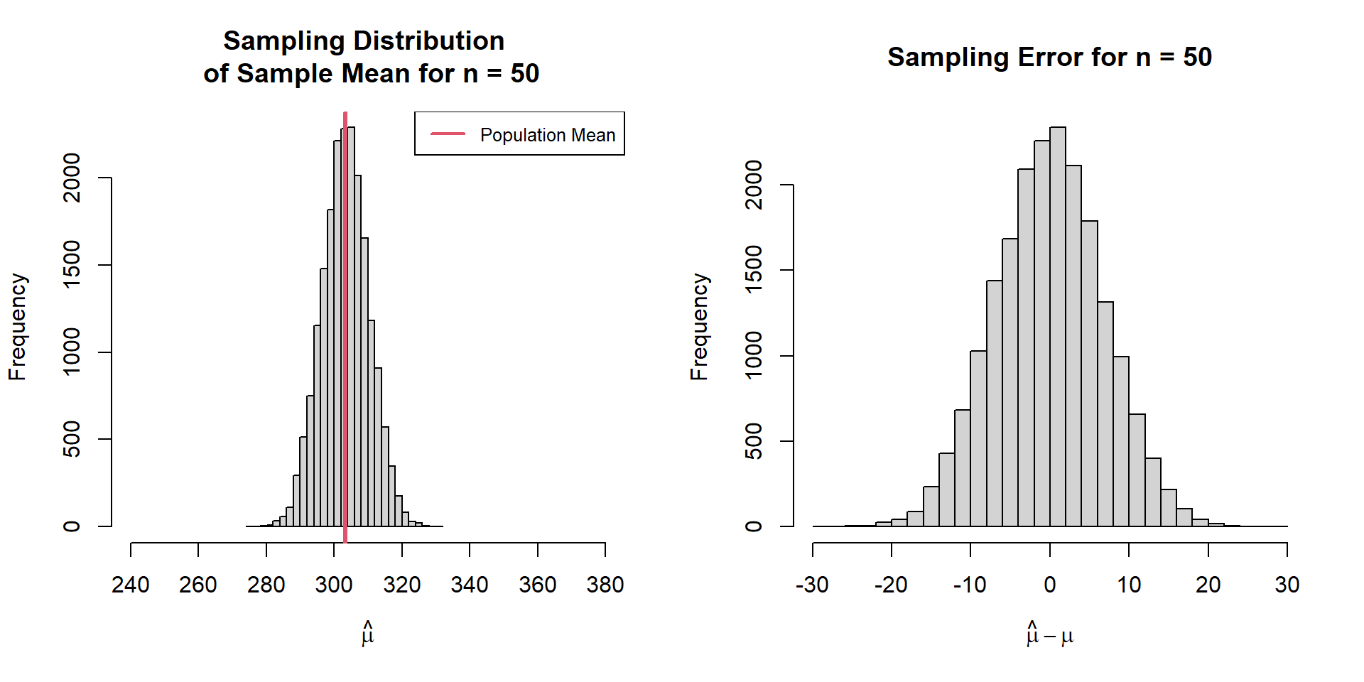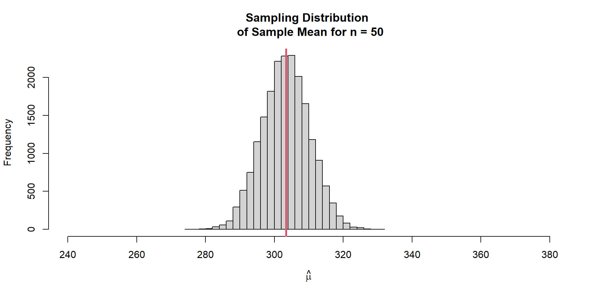 \[\hat{\mu} = \left(\sum_{i=1}^{n}y_{i}\right)\times \frac{1}{n} = 57.7\]