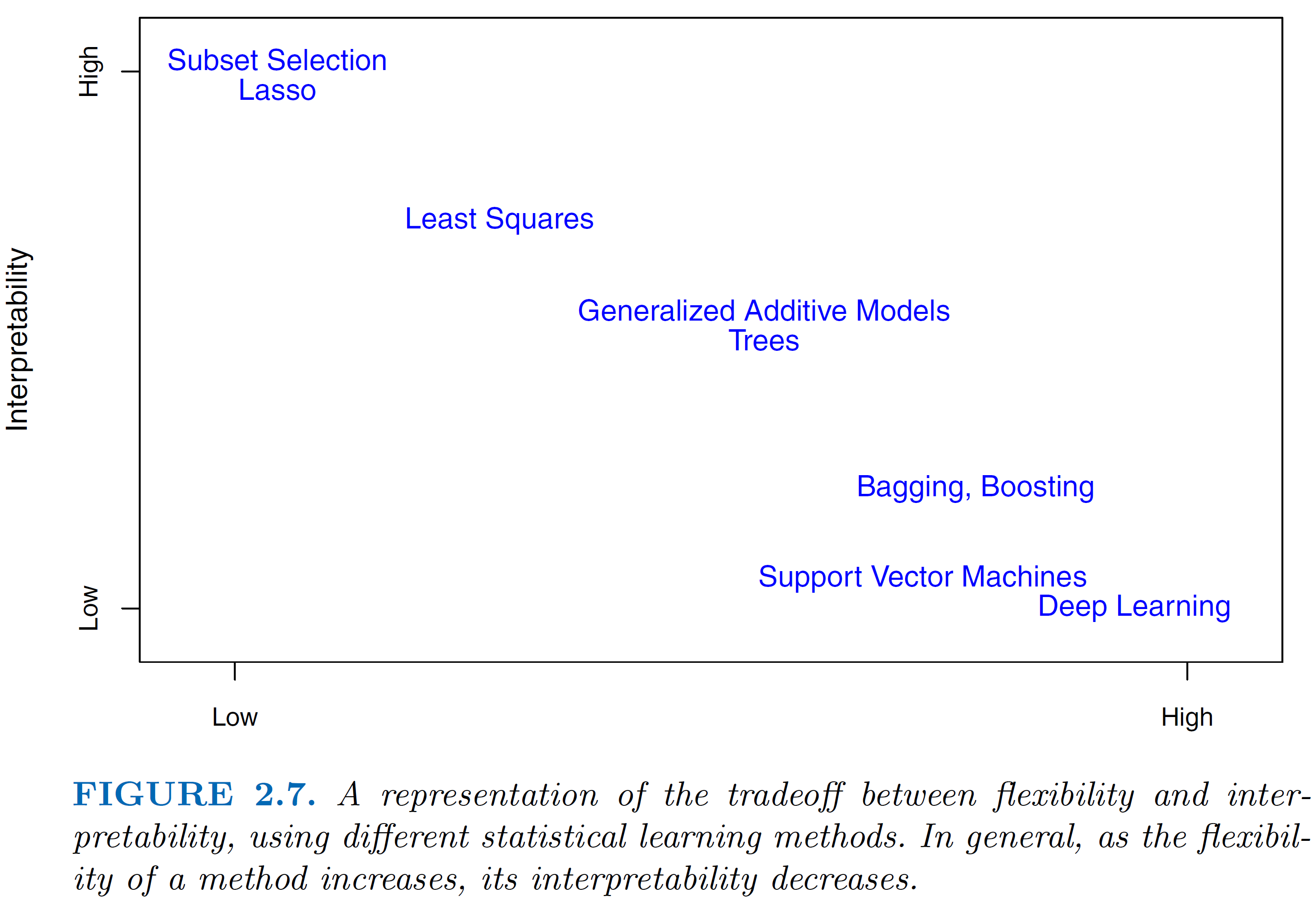Explanatory models will likely perform better when predicting outside of the sample space and the model has the core underlying processesTrade-Off between prediction accuracy and model interpretability; from James et al. 2013. An Introduction to Statistical Learning