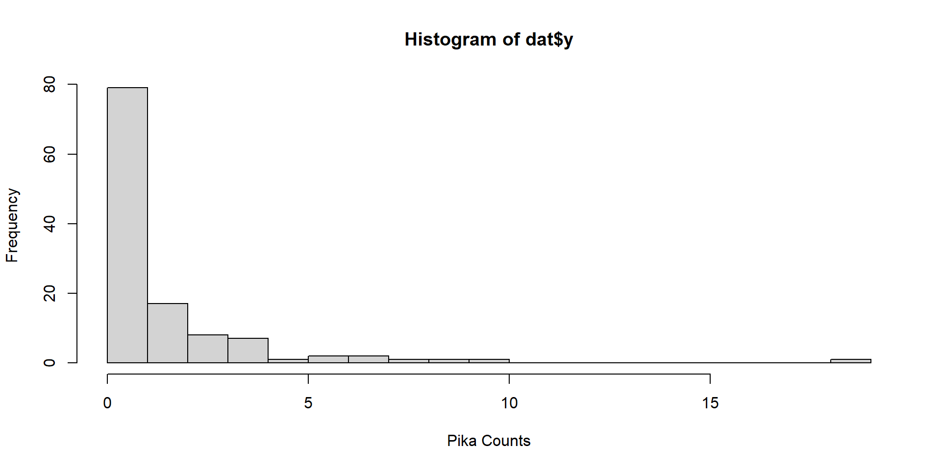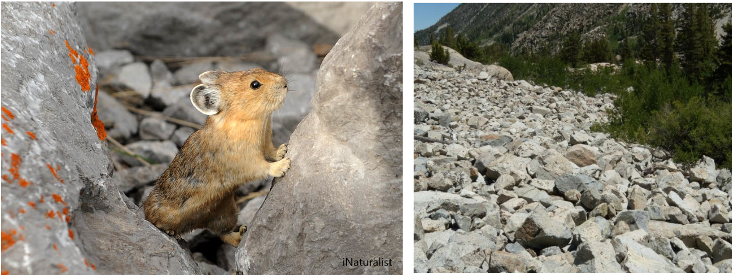 We sample plots of high elevation rocky outcrops, counting the number of American Pika within each plot; plot sizes are the same size.