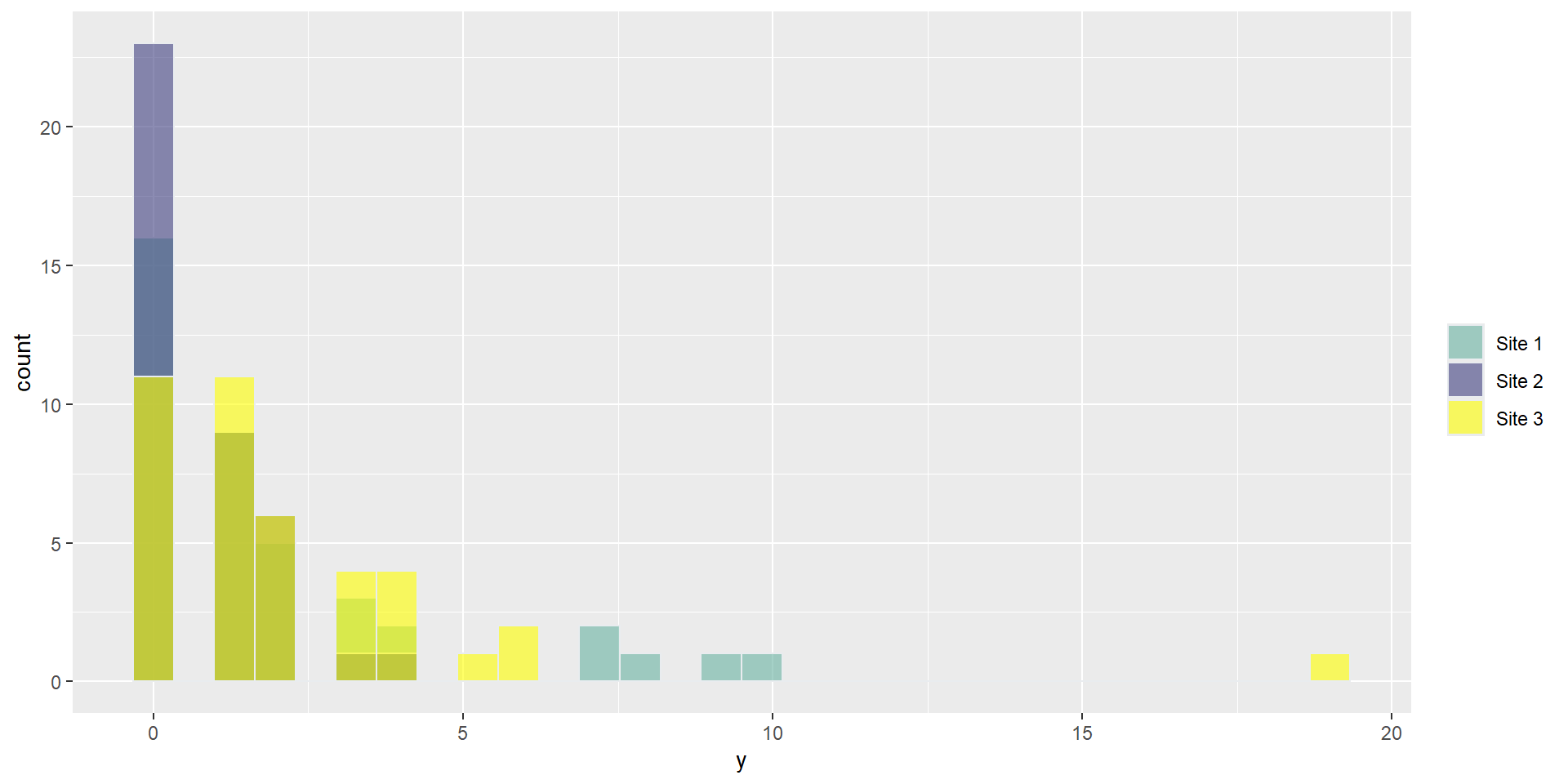 glm(formula = y ~ site, family = poisson(link = "log"), data = dat)