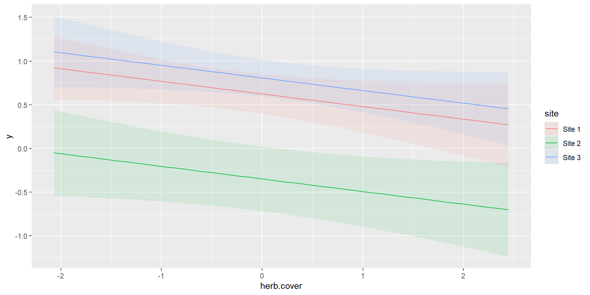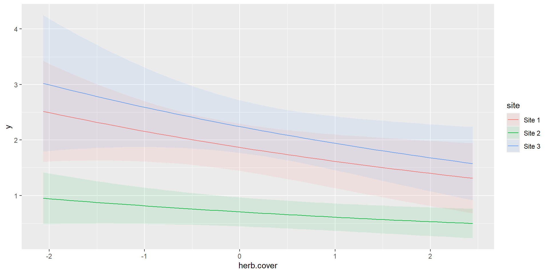 (Intercept) siteSite 2 siteSite 3 herb.cover siteSite 2:herb.cover