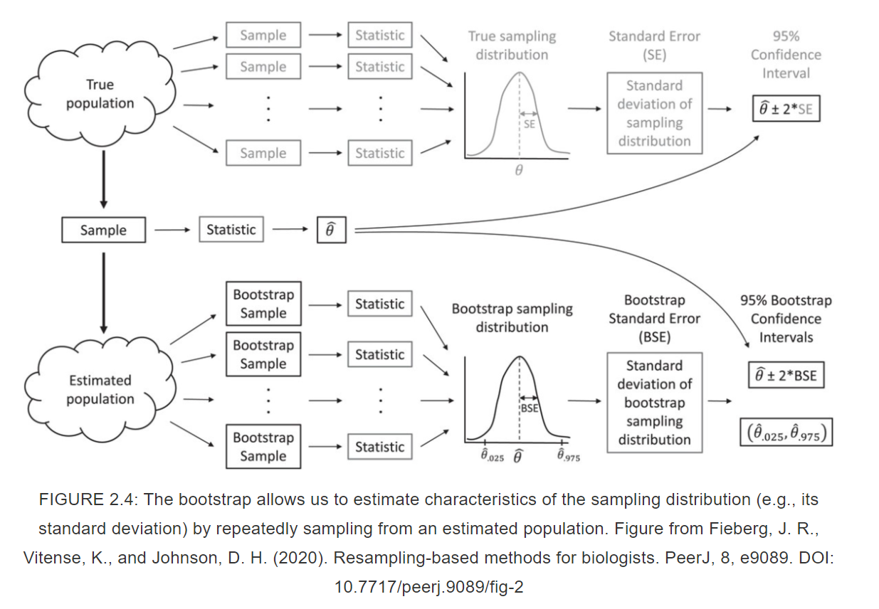 Instead of relying on the 95% intervals from an assumed normal distribution, we will create a distribution by resampling our data.