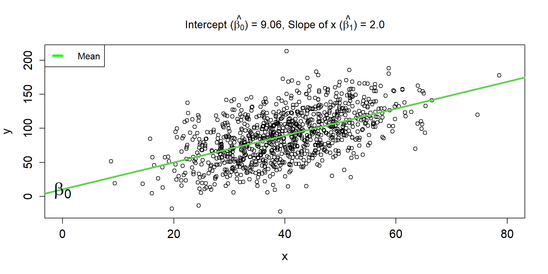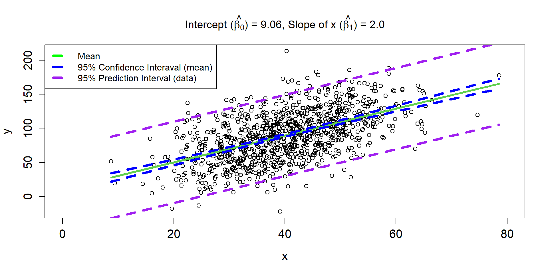 \[ \hat{\mu_{i}} = 9.06 + 2\times x_i \]