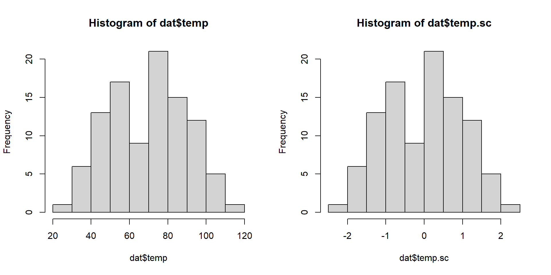 lm(formula = y ~ temp.sc + dist.sc, data = dat)