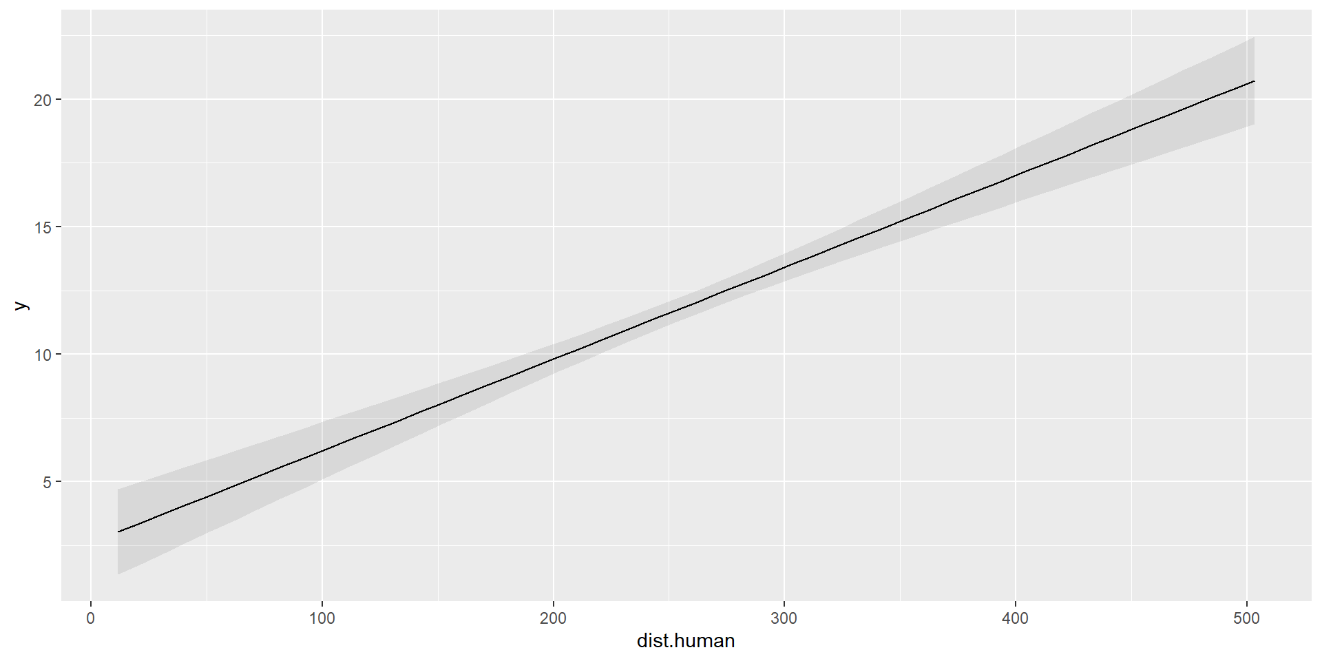 marginaleffects::plot_predictions(model, condition=c("dist.human"))