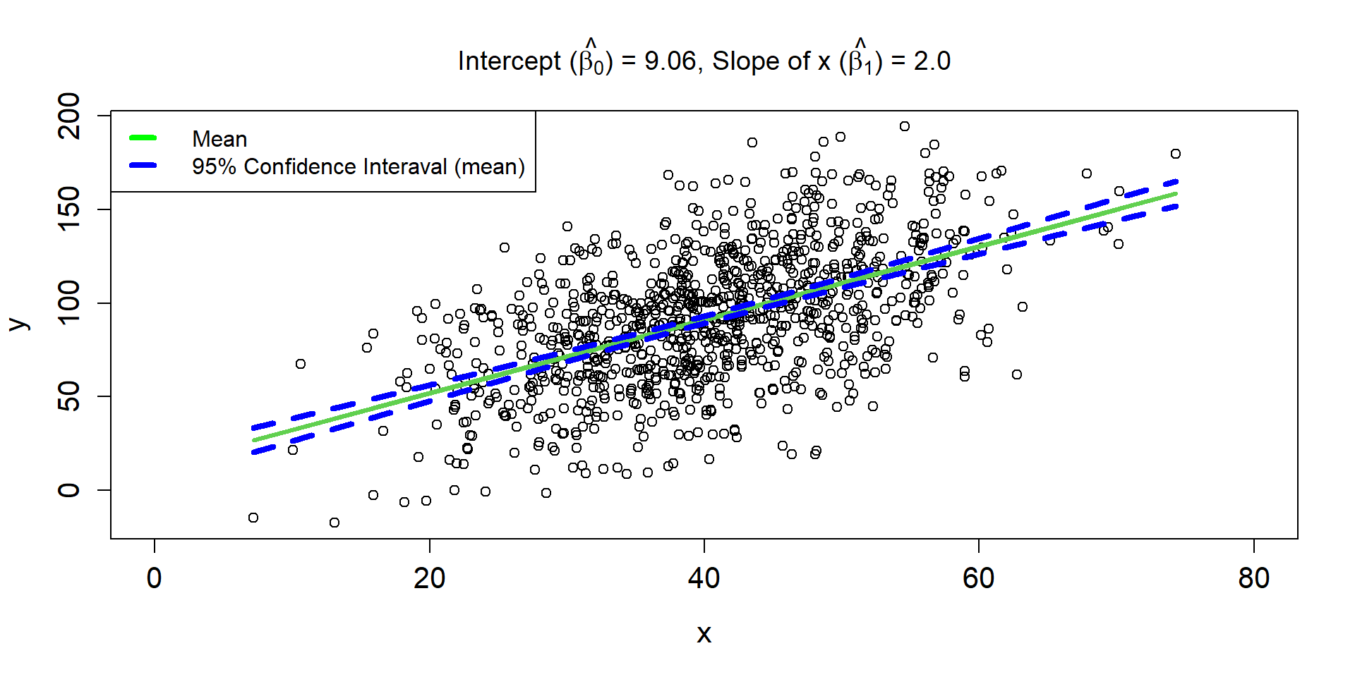 This means that knowing how far observation \(i\) will be from the true regression line tells us nothing about how far observation \(j\) will be from the regression line.